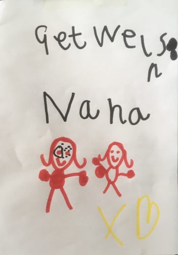 I had the most amazing black eye from my fall; the rainbow colours were very present. My dear Gracie, aged nearly 6, decided to make me a get well card. She was quite concerned about how I might look from my reported injuries. The relief on Gracie's face when she saw I was ok was the best medicine I could ever have had.